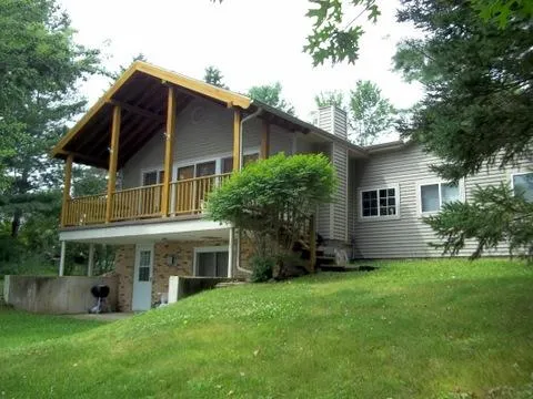 Year'round lake home has many newer updates so you can move-in and enjoy the setting. Home is located on Rollofson Lake so if you like to fish this one is for you. Or enjoy the no wake lake for quiet views and wildlife watching. Main floor has 2 bedrooms and the lower level also has 2 bedrooms for total living area of 1860 sq ft. There is a large deck over-looking the water to enjoy the fresh air and sunny views. Or relax by fishing off the dock or take your paddle boat for a bit of exercise. The lower level also has large family room with cozy gas fireplace. This well-kept home is a must see with 90 feet of lakefront to enjoy.