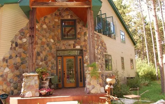 Amazing design for attractive home located on Lake Solidtude in Waupaca, WI. Home is on 1.31 acres with a private dock to feed the fish and a large deck to enjoy the view while having a cookout. Home has 2085 square feet with 3 bedrooms and 3 full baths. The stone front exterior signals good things to come. The interior of this home is quite distinctive with cathedral ceilings, heated floors, and architectural detail. There is on demand hot weater, security system, central vac, wet bar, outdoor sauna, large tiled showers, and walk-in pantry. Garage has separate living area with full bath.