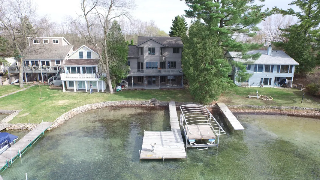 Chain O'Lakes home is custom built to optimize the waterfront views and sunsets across McCrossen Lake through Brown's Point and into Round Lake. Gorgeous panoramic views are part of every room's view from this 3-level lakefront home. There is 2950+/- sq feet of finished living space including 3 bedrooms, 3.5 baths, main floor great room, lower level family room, main floor laundry, and home office off the 2-story elegant foyer. Details include 2 fireplaces, central vac, whirlpool in master bath, wood floors, and quality finishes throughout. The lower level provides a family area with fireplace for casual gatherings and a walkout entrance to waterfront patio. Appliances are included with dishwasher, microwave, range, washer, and dryer. Pride of ownership shines throughout for move-in ready opportunity to be right at home on the Chain O'Lakes.