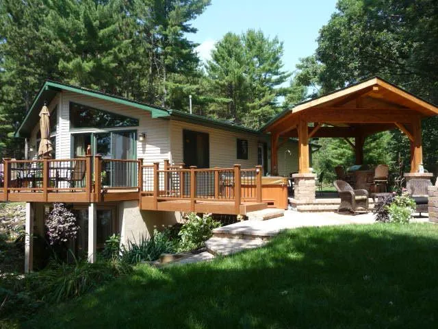 Just south of Waupaca County line find this waterfront home on Twin Lake for fishing, boating, swimming, and relaxing on the water in Central Wisconsin. For land lovers, enjoy a new full outdoor kitchen with cement counters. Outdoor living space also includes huge patio, 2-story free-standing fireplace, hot tub, and of course views over Twin Lake in private sanctuary location. HOme also features a huge LL family room with walkout to the sandy beach area for easy water access to canoeing or kayak crystal clear waters of Twin Lake. The inviting home is open-concept design on main floor including main floor laundry room and master bedroom. There are a total of 3 bedrooms and 3 full baths. All of this is on one acre with 100 feet of shoreline on the lake. If you want more elbow room or hunting land out your b...
