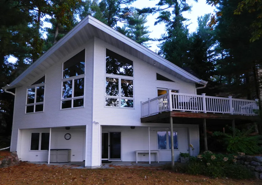 This private, wooded Chain O Lakes year round home can be found nestled on the shores of Taylor Lake. With 100 feet of frontage, this is a perfect spot to enjoy the beautiful Chain O Lakes! This low maintenance home offers main floor living with an open concept great room featuring a wall of windows overlooking Government island. This home has an upgraded kitchen with granite counter tops that allow for a breakfast bar. The open concept allows lake views from the kitchen and large living room with walkout deck. Additionally, the main level offers a master suite, laundry room, welcoming foyer, office and a 2nd bathroom. The lower level offers a full walkout to patio, 2 additional bedrooms, a rec room w/bar, full bathroom, and even your own exercise room. The landscaped, level yard leads down to the lakefront where you can enjoy lakefront living at its finest from your floating pier. This ...