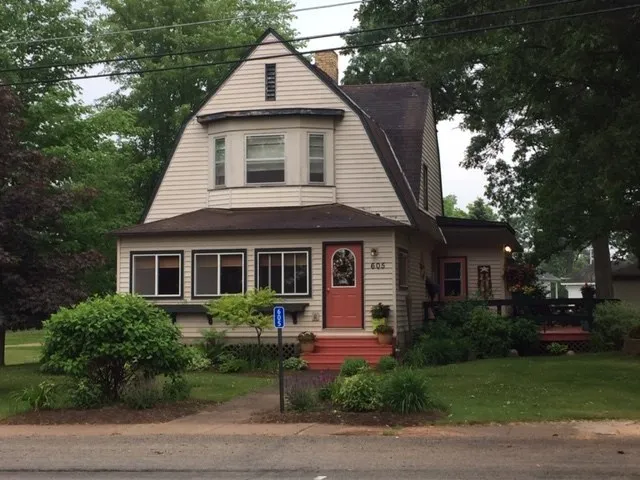 VILLAGE OF WILD ROSE-Large lot in the Village of Wild Rose, features a 3 bedroom, 1.5 bathroom home. Property is currently zoned commercial and includes a 1,700 sq. ft. metal pole building that was previously used as a workshop and gift store. Start your own business or use it for extra storage. Enjoy the beautifully landscaped yard from the deck.
