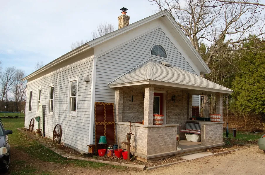 Updated old schoolhouse with open, spacious floor plan. Set up as a small hobby farm, raised garden beds, great views in backyard, and close to Hwy 73. Large basement area, could be finished off for more living space. Bilco door & interior access for easy access to basement. Large deck off backyard, wood and electric heat. Peaceful and quiet country living.