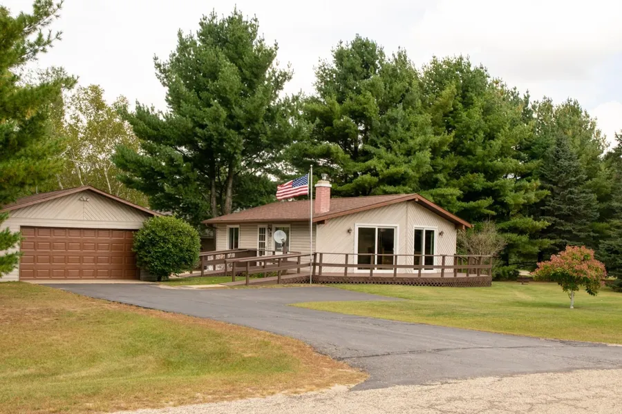 This move-in-ready 2 bedroom 1 bath nestled in a quiet area is great for anyone wanting the "Up North" feel without being too far away from town. The one story open floor plan and wood-burning fireplace create an environment that is inviting and cozy. Two big sliding doors lead out to the wrap-around porch with handy ramps that give you easy access to the garage and beautiful yard. Set up your showing today before it's too late!