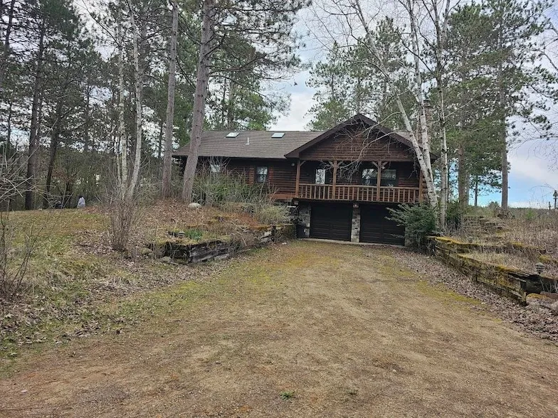 Log Home on 10 acres. Beautiful Fieldstone fireplace. Beautiful views of the rolling hills. Open kitchen and living room. Master and laundry on the main floor. Lower level has additional family room with bedroom and bathroom.