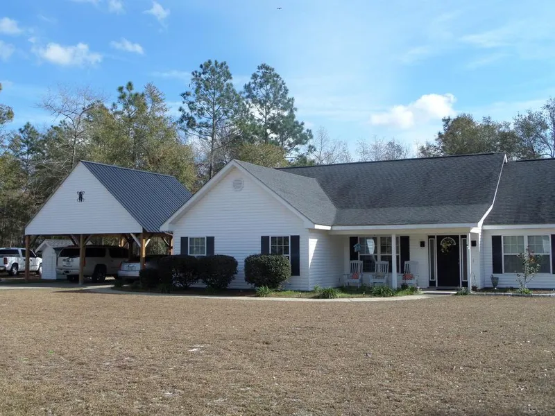 This 2,053 home is found in the Oak Island Subdivision. It sits on 5.3 acres and was built in 2005. It has a Timberline shingle roof, 2 car carport, deep well, a shed. There is a chicken coup strategically placed behind the shed. A small screened porch sits at the back of the home. It is also equipped with a new air conditioning unit.