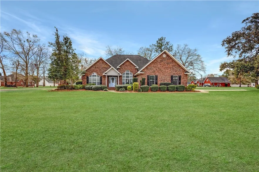 Welcome to this beautiful 4-bedroom, 2-bathroom brick home located in the sought-after Willow Creek subdivision within city limits. With 2,304 heated square feet of living space on a spacious 1-acre lot, this home offers the perfect blend of comfort and style. Step inside to find high ceilings, crown molding, and a formal dining room that exudes elegance. The eat-in kitchen features white cabinetry, a tile backsplash, stainless steel appliances, and bar seating overlooking the cozy living room with double tray ceilings a perfect space for entertaining. Enjoy a mixture of LVP, tile, and carpet flooring throughout the home. The master suite is generously sized, complete with a walk-in closet and a spa-like en-suite featuring double sinks, a large soaking tub, and a separate shower. Outside, the fenced backyard offers a covered back porch with a deck overlooking the beautifully landscaped yard. A sprinkler system ensures easy maintenance, while the double garage provides ample parking and storage. Don't miss your chance to own this exceptional home! Schedule your showing today.
