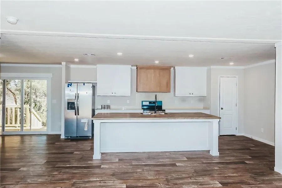 Located at the end of a quiet cul-de-sac on .67 acres, this 3-bedroom, 2-bath home offers a comfortable blend of space and modern style. As you walk in, you’ll notice the open-concept layout, finished drywall, and natural flow from the living area into the kitchen, featuring a large island with ample workspace, tile backsplash, and a spacious pantry. The dining area sits just off the kitchen, making everyday living and entertaining effortless. A spacious, separate laundry room adds extra functionality. All three bedrooms are well-sized, with the primary suite offering a separate walk-in shower, soaking tub, and a large walk-in closet. Enjoy a peaceful setting with room to breathe, all while being conveniently located.