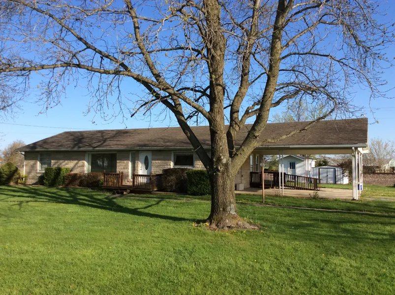 HAS LOT OF POTENTIAL! Brick Ranch with 2 acres, m/l of frontage along IL Hwy 15 in a small rural town. This home is located across from Dollar General and close to amenities. Home offers 3 bedrooms, 2 baths, formal living and dining rooms. Great for the investor! $72,500