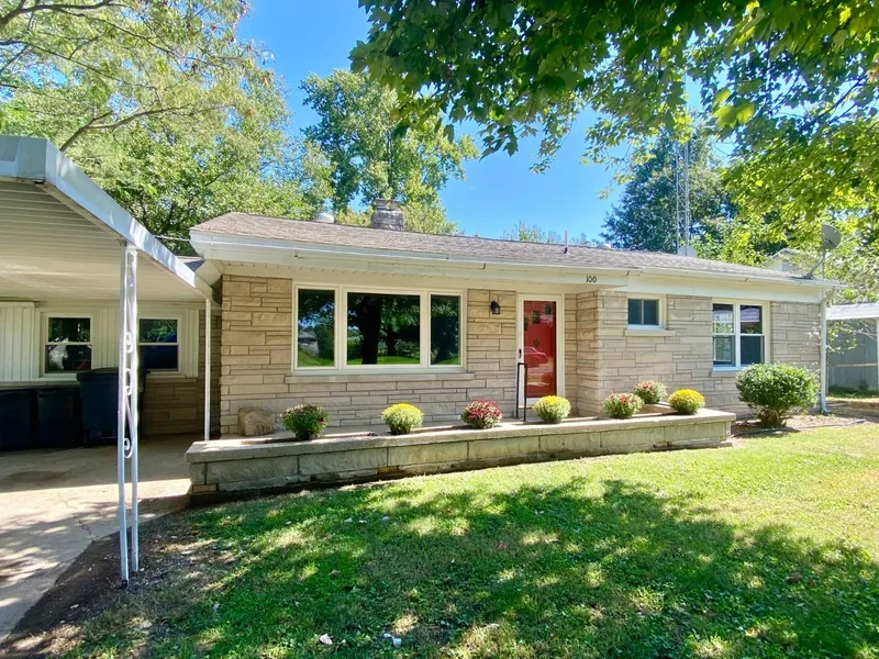 Agent owned property. This updated 2-3 bedroom, 2 bathroom home delivers solid character with its Bedford stone exterior, covered porch, and built-in planters that set the tone right from the curb. Inside, the living room offers a comfortable layout with updated flooring, generous natural light through the large picture window, and a gas fireplace that provides extra comfort. Connected to the living room you will find the dining area featuring classic knotty pine built-ins that add warmth and style. The kitchen provides plenty of cabinet storage with doors constructed of knotty pine, and a pantry closet to keep things organized. Two bedrooms on the south side of the home include large walk-in closets and easy access to the recently renovated full bathroom. In the hallway connecting the bathroom and bedrooms to the rest of the home you will find a storage closet and built-in shelf that could be used display your favorite trinkets. Just off the kitchen is a large bonus room with laundry hookups and a 3/4 bath-ideal for added living space, a guest room, or a potential third bedroom setup. The full basement is approximately 900 sq. ft. and includes support posts, sump pump, furnace, and a newer water heater. It offers room for storage, projects, or future finishing options. Outside, the property includes an attached front carport plus an additional carport on the southwest side. The deep backyard has posts in place for a possible future fence. If you're looking for a home with character, updates, and flexible space, this one is worth a closer look. Room Sizes: Living Room 19x12.2, dining 12. x10.4, Kitchen 10.8x11, Bed 12x10.6, Bed 12x10.1, Bath 5.1x10.3, Bath 7.3x5.1, Basement 36.9x24.7