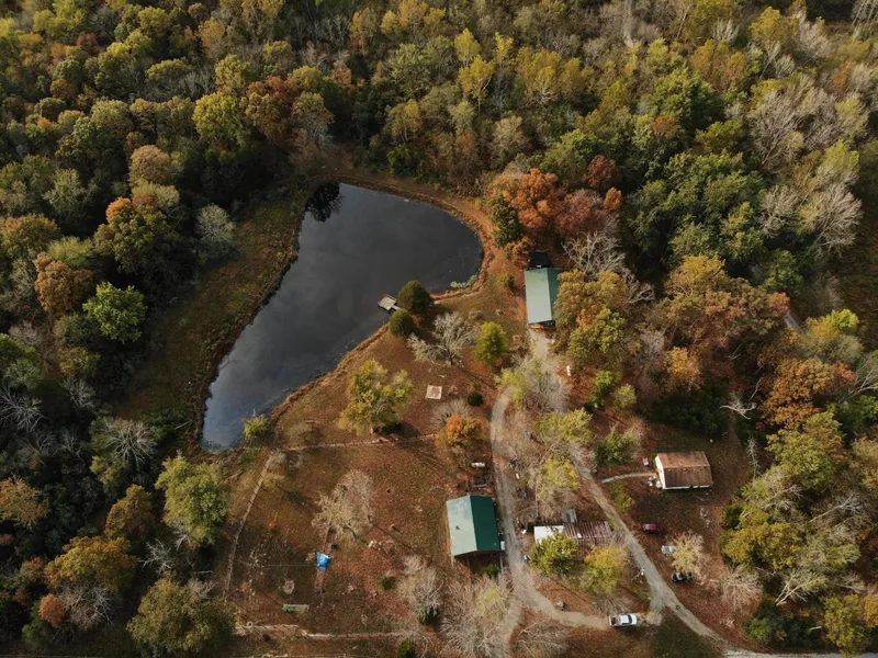 Fully stocked pond is spring fed and is 30’ deep Pond include a dock