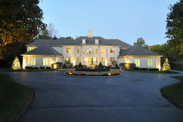 This magnificent 10,588 square foot French manor nestles on 45+ beautiful rolling and secluded acres. It offers incredible architectural elegance and detailing. The main level includes a stately two story grand room and a comfortable family room & kitchen area. Read your favorite book by the fireplace in the cherry library and then rest peacefully in the spacious main level master suite. Or wander to the lower level to watch a movie in the home theatre or to enjoy activites in the recreation room or exercise suite. The outdoor resort style grounds have sprawling lawns & lush landscaping with an in-ground sprinkling system, a large stocked pond, a heated in-ground pool, hot tub, and lighted tennis & basketball courts. Relax by the pond in the gazebo with your favorite beverage, or take a walk on one of the many paths through the woods.