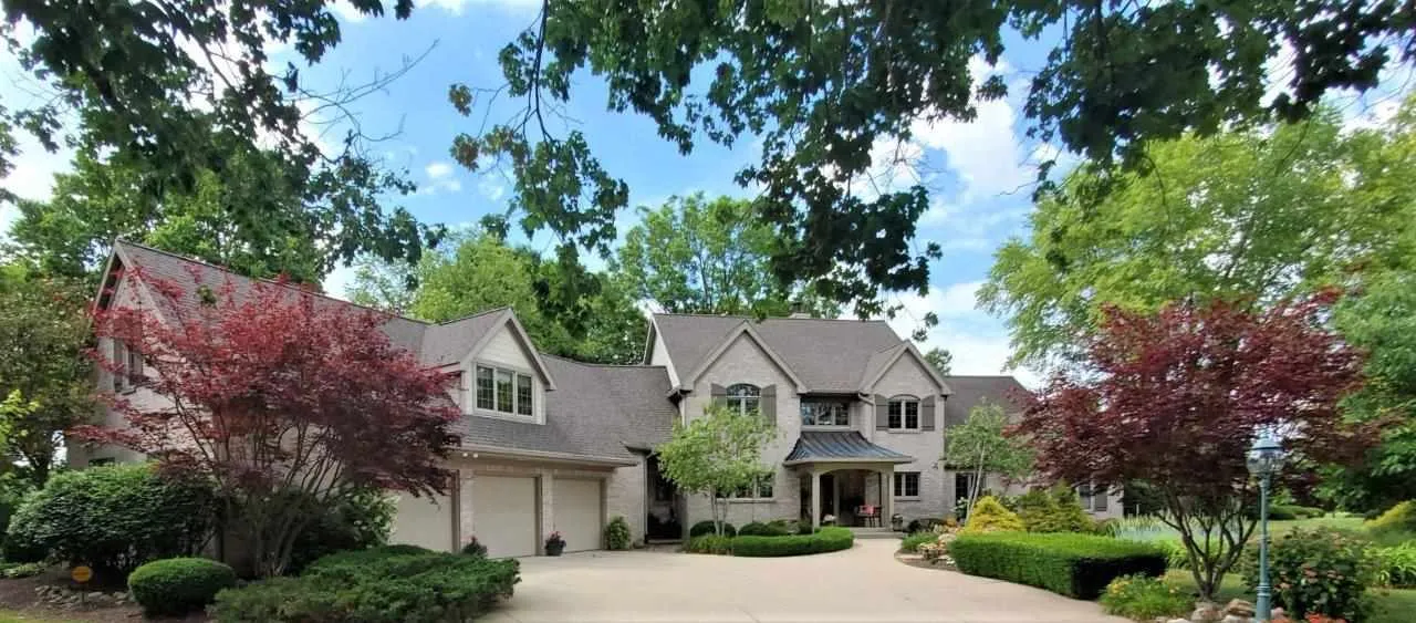 Spectacular waterfront estate with many upgrades. This custom French country 4 bedroom 2 full baths and 2 half baths is a real treasure. You will love the amenities boasted by this modern up to date brick home situated on an amazing waterfront lot. Large mature trees and stunning perennial flower gardens including a brick patio and over-sized decks and many sitting areas overlooking the water surrounding over 4500 square feet of 1st class living space. You will feel totally relaxed when surrounded by this home 2-story windows, custom dining room with open concept, new ultra-modern French kitchen with granite counter-tops, 500 plus square foot master bedroom and bath suite with custom ceramic walk-in tile shower, jetted whirlpool tub and private closet with washer and dryer. The totally finished basement includes a luxury half bath, an entertaining area, a full bar, and home theater set up. The over-sized 3.5 garage is ready for your toys and the private circular driveway is easy to access. There is a wonderful den/office that overlooks the water and the 2-story living area with custom fireplace. This home includes a state of are full security system that has off-site camera storage and off-site visibility of the home and grounds. This estate is a true one of a kind. Priced to sell. Call or text Kyle Tom today at 765-220-0199 to schedule your private tour or visit kyletom.com for additional details.