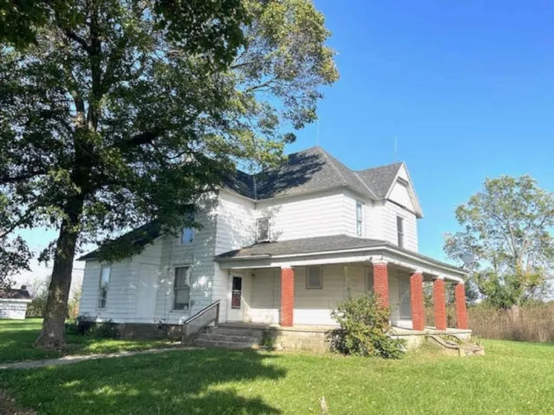 Restore this home to its original masterpiece! Situated on over 3 acres, this two-story farmhouse boasts a stunning wrap-around porch. Inside, the home features original hardwood floors that add character throughout. The beautiful front staircase, accented with intricate molding, serves as a striking focal point. Both front and back staircases providing easy access to the spacious main level, which includes multiple rooms for various uses. The main floor also includes a full bath and laundry area, providing functionality. Upstairs, you'll find three bedrooms and another full bath along with a small room for a home office or playroom. The property is complemented by five-plus outbuildings, perfect for storage, workshops, or hobbies. This farmhouse combines classic charm with modern convenience, making it a perfect retreat in the countryside. The property is in a trust and is being sold as-is. Text 1083586 to 35620 for more information and photos.