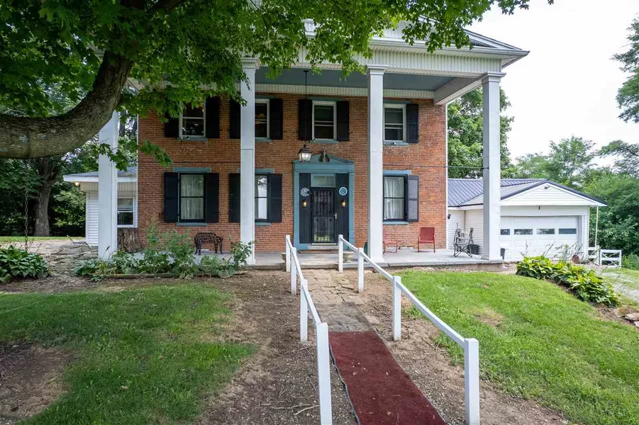 Step back in time with this stunning 1800s Historic Federal-style home- one of the original homesteads of Southeastern Wayne County, Indiana. Set in a pristine rural landscaped surrounded by rolling farmland and breathtaking sunsets, this property offers timeless charm and peaceful living. A massive front porch welcomes you into a home that has been cherished by generations. Inside, you'll find original woof flooring, soaring 12-foot ceilings, and fireplaces in nearly every room-one of which remains functional today. The home features a beautiful updated kitchen and bath, main level laundry, many new replacement windows, and recently replastered ceilings throughout. Modern comforts include an updated heating system and central air on the main level. Outdoors, enjoy the back pasture with a serene pond and some fencing-perfect for small livestock or simply relaxing in nature. A rare opportunity to own a piece of local history with modern conveniences. Call Rhonda or Marc for your appointment today. 764-967-7466