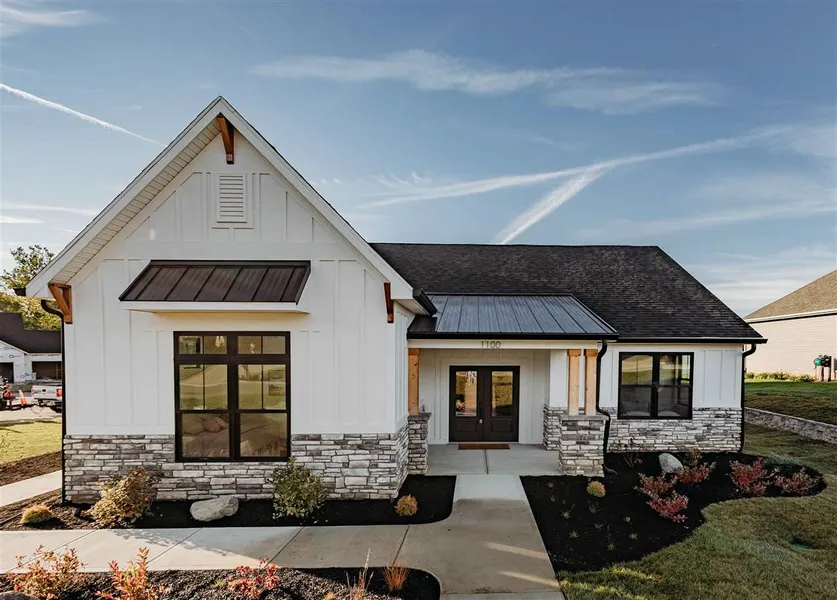 Exquisite in every detail this outstanding Modern Farmhouse ultra-custom home custom home has 3 bedrooms 2 and one half full baths, and has just been completed for you, located in the sought after Sandbridge Hills subdivision on a large and amazing professionally landscaped corner lot and constructed by the amazing builder “ Trademark Construction “ with interior design assistance by Natalie Next Door this home boasts over 2,300 SF with many custom features and many fine amenities such as a designer interior trim, an open dining room with solid surface floors and large windows, several oversized closets, a large multi-cabinet kitchen with top of the line stainless appliances including a large oversized bar, solid surface countertops, an open great room/living area with high beamed ceilings, many solid surface floor coverings, a large beautiful 4 seasons room and rear patio with tons of privacy, a 3-car attached garage with extra ceiling height, an amazing study, a security system, a true owners master suite with top of the line finishes including a soaking tub, dual vanities, oversized walk-in closet, and custom tile work, and too many more additional amenities to list. This home has been constructed with no expense spared. Call or text Kyle Tom today @ 765.220.0199 to schedule your own private tour or for additional details. Amenities sheet available online.