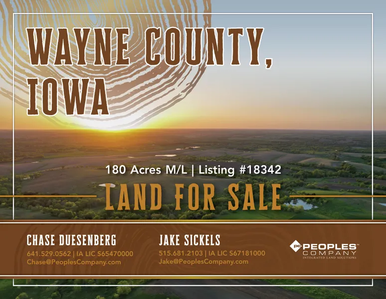 If privacy and seclusion are your top priorities, this 180-acre m/l property in Wayne County is exactly what you're looking for. Situated northeast of Promise City, this unique parcel is accessible through private easement off 235th Street. It's also conveniently located just southwest of Rathbun Lake, Iowas second-largest lake, spanning 11,000 acres and offering year-round recreation including fishing, boating, swimming, hiking, and camping.