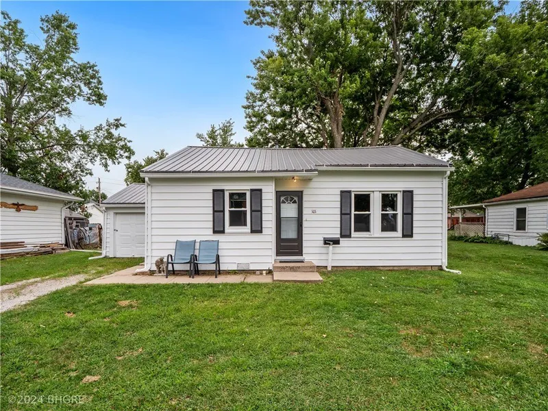 This charming 2BRs, 1BA home is the perfect starter or downsizing option for anyone looking for a cozy & comfortable living space. Situated in a quaint smaller community, this home boasts a spacious backyard with alley access, shade trees, & plenty of space for outdoor activities such as gardening or relaxing around a firepit. As you enter the front door, you'll be greeted by a large living room, perfect for entertaining guests or enjoying a peaceful night in. The kitchen includes a new dishwasher & large cabinets for ample storage space. Additionally, there's a laundry room off the kitchen w/ a stackable washer and dryer included & additional storage space. The home also features 2BRs, each w/ plenty of natural light & closet space, as well as a well-appointed BA with brand new shower. The recently renovated home features new carpeting, updated fixtures, new windows & doors, a newer water heater, a newer metal roof, & new gutters w/ leaf guard, making it a low-maintenance & efficient living space. This home also includes a one-stall attached garage, providing extra storage space for cars or equipment. Located on the edge of town, this home is in a great location for easy travel to all amenities Corydon has available, & is just blocks away from a HyVee & the Wayne Elementary School.