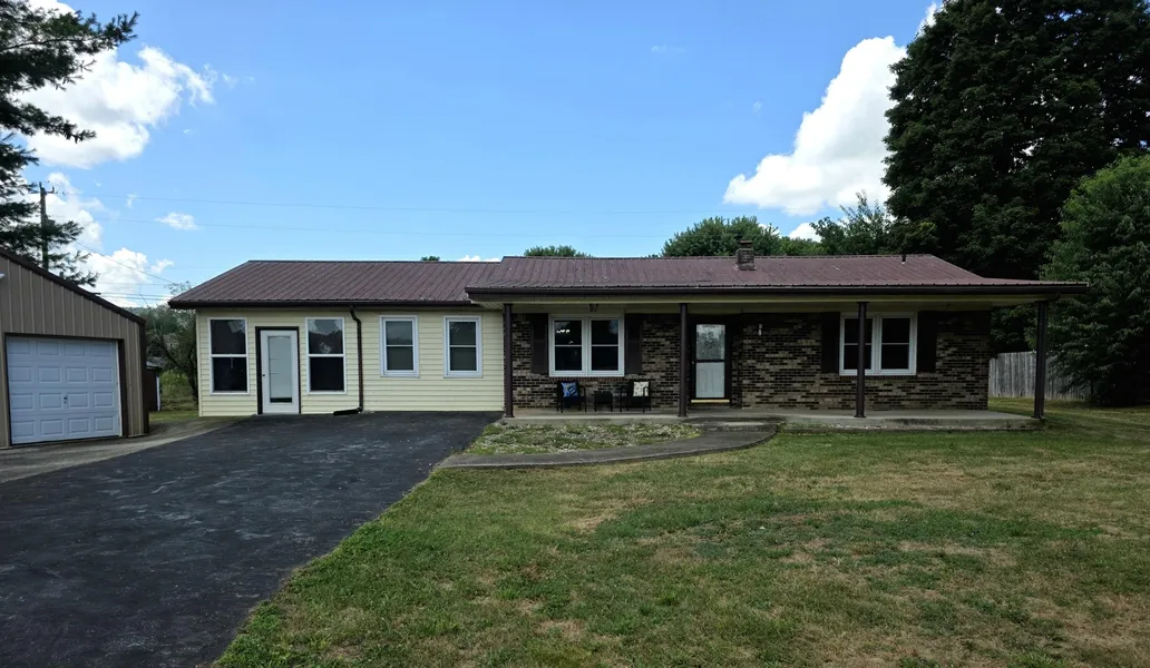 This brick ranch style home boasts two bedrooms, living room, kitchen, large dining room, utility room, bathroom, sun room, large covered back deck, central heat and air and 2 car metal detached garage. Home sits on Lot 10 and has adjoining Lot 11 that makes a large area for use with the home or would be ideal for an additional building lot. Hartland Subdivision. The owner was in the process of remodeling when he was relocated. With a little finish work this would make a very nice and affordable home.