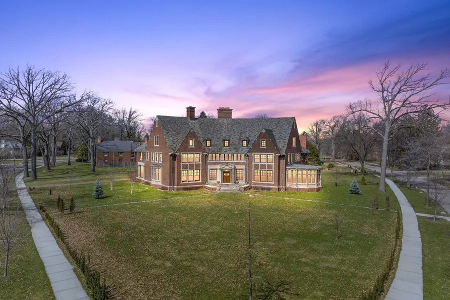 Built in 1922 for Charles B. Van Dusen, president of the S. S. Kresge Corporation, this French Gothic Revival is one of the most breathtaking estates in Detroit. The exterior has a fascinating curved brick faade, stunning limestone carvings, a solarium and slate roof. Inside, the first floor is Architectural Digest-ready with outstanding tiled floors, wood paneling, a coffered ceiling with painted details, glass pane doors, countless fireplaces and built-ins. The second floor has seven bedrooms and five full baths. The third floor is the party floor with a billiards room and a grand ballroom. On the extensive grounds, the former carriage house has been converted into a four-car garage with a two-bedroom apartment on the second level. Make this home your summer oasis!