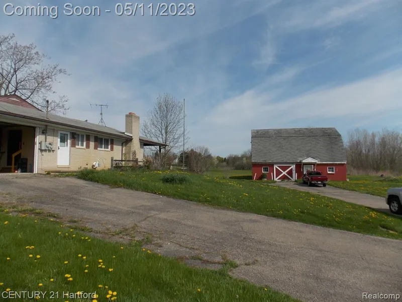This could be the one you are looking for. A 3 bedroom ranch with 2.1 Bathrooms with one being in the primmary bedroom. Nice size kitchen with a large eating area. The Family room has a doorwall going out to the patio and a wood burning fireplace. The home has a 2.5 attached garage with plenty of storage. All this and a Barn that is handy man's dream. It comes with a car repair section that has a compresser 220 elect and a lift. Then into the other section is a wood working area. You then can go up to the second floor that has a 2 bedroom appt. All this on 9 Acres. Water and sewer at the street level. All measurement's are approximate. More Photos to come.