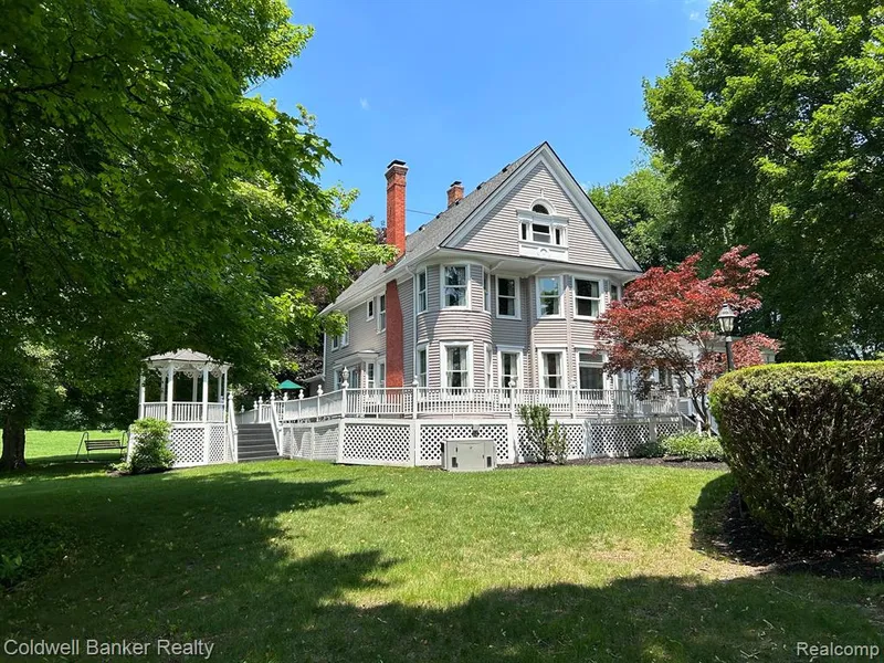 Historic Fish Hatchery home in Northville sits on a beautiful 1.83-acre parcel. The owners have lovingly owned and maintained this home for 46 years. The impressive moldings, the original all-wood doors, the custom windows, the 3 fireplaces, and the stunning staircase are just a few features that make this home so charming, unique and special. The home is almost 3000 sq ft with an additional 200 sq ft in the welcoming sunroom. The unfinished 3rd floor would make a great 5th bedroom, office or playroom. The curb appeal is stunning and features a wrap-around porch and gazebo to view the lovely yard and natural spring-fed pond. Convenient circle drive makes entering and exiting the property a breeze. The large barn has electricity and a loft area for extra storage space. Well and pump by pond for lawn watering. This home and lot are truly one of a kind and walking distance to desirable City...