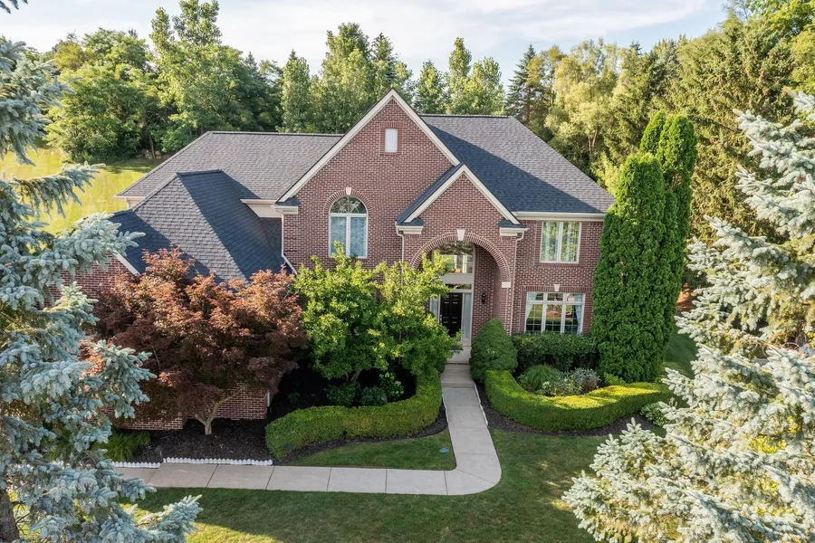 Must-see Stonewater colonial on private cul-de-sac! Custom built home. Grand foyer entrance leading to 2-story great room with floor to ceiling windows and gas fireplace. Hardwood throughout most of 1st Floor. Private office with French doors and built-in shelves. Gourmet kitchen with granite, cherry cabinets, Sub-Zero fridge and large walk-in pantry. Master suite with tray ceiling, make-up rm leading to expansive WIC and master bath with jacuzzi tub and standing shower. Finished Lower level with rec rm, wet bar, theater room and workout room. New interior paint (2024), roof (2023), exterior paint (2023), furnace remodel (2020) and landscaping (2016). Sought after Northville schools. Close to downtown Northville, shopping, restaurants and easy highway access.
