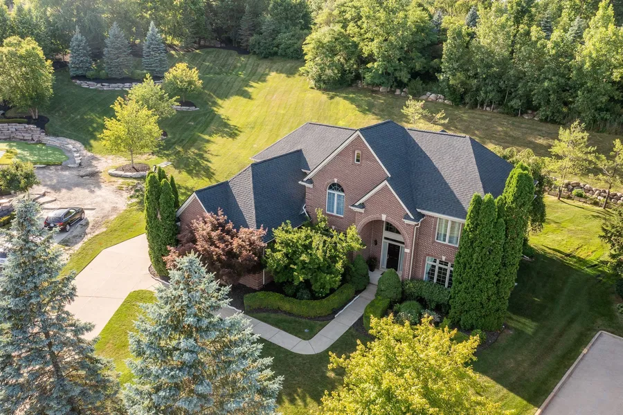 Must-see Stonewater colonial on private cul-de-sac! Custom built home. Grand foyer entrance leading to 2-story great room with floor to ceiling windows and gas fireplace. Hardwood throughout most of 1st Floor. Private office with French doors and built-in shelves. Gourmet kitchen with granite, cherry cabinets, Sub-Zero fridge and large walk-in pantry. Master suite with tray ceiling, make-up rm leading to expansive WIC and master bath with jacuzzi tub and standing shower. Finished Lower level with rec rm, wet bar, theater room and workout room. New interior paint (2024), roof (2023), exterior paint (2023), furnace remodel (2020) and landscaping (2016). Sought after Northville schools. Close to downtown Northville, shopping, restaurants and easy highway access.