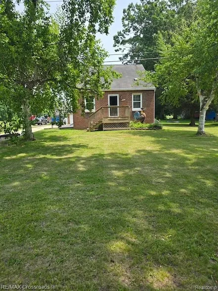 Brick Farm House on 10 Acres. Great for the Land lover with privacy and a placid setting. Brick 2 car garage with Two Pole Barns measuring 60x20 and 32x16 with electric. Home offers 3 Bedrooms, 1 Bath, Unfinished Basement and tankless water heater and updated electric and plumbing. On city water and sewer, paved street and possible split plus more.