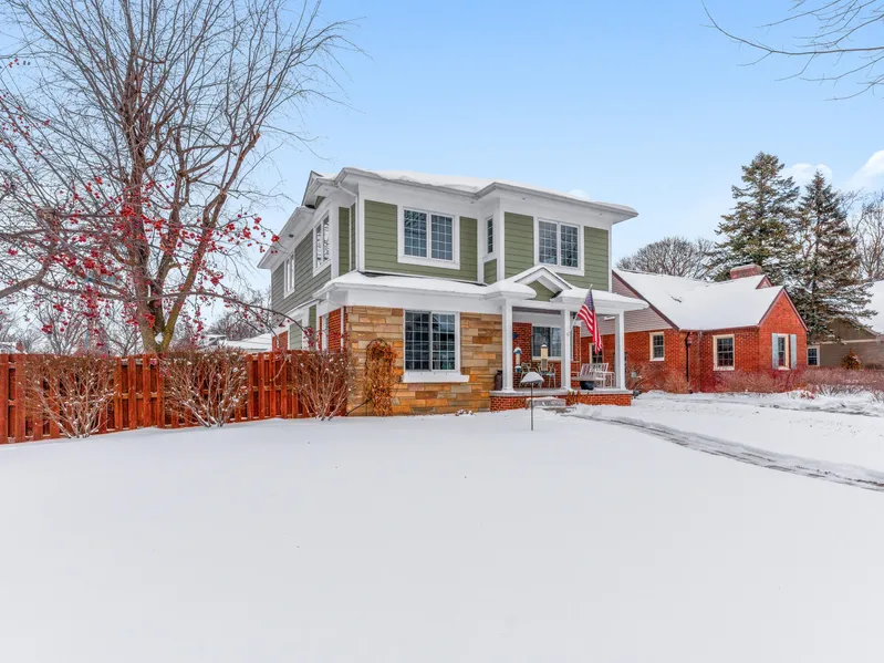 Stunning custom-built home on a premium corner lot in downtown Plymouth, just steps from exclusive dining, shopping, and festivals. Meticulously maintained with maple hardwoods, custom millwork, designer lighting, and an open-concept main level. Chef's kitchen features custom cabinetry, quartz counters, stainless appliances, bonus fridge, and views of the sun-lit Great Room with built-ins and gas fireplace. Main-floor office and full bath. Upstairs offers a serene primary suite with walk-in closet and custom full bath, plus three spacious bedrooms and second-floor laundry. Fully finished basement adds a fifth bedroom, full bath, second living area with dry bar, craft room, workshop, and extra laundry. Smart-home features, 3-zone HVAC, and an expansive fenced yard with paver patio and outdoor kitchen. 2.5-car garage. Don't miss this rare opportunity of Downtown Plymouth living!