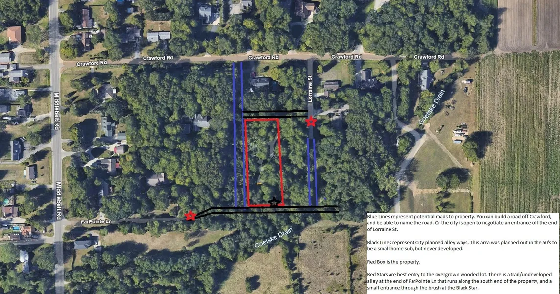 Almost an Acre of vacant land (Wooded) to build your dream home on it or buy & hold for investment. It's Huron Township address with Woodhaven school district. Land is perked, surveyed and utilities close on main road, Crawford. Seller is motivated. Both parcels are sold together. 7500010080300 &75003010076303 New map and directions to the land added to listing. Survey is attached too