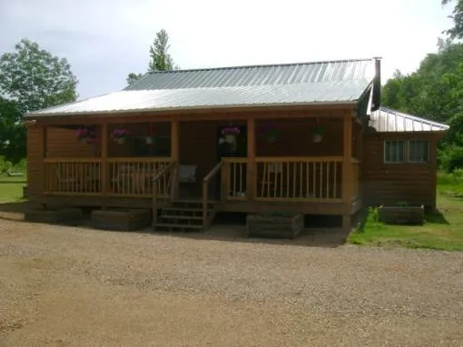 CABIN ON 4.6 ACRES NEXT TO SILVA, MISSOURI. Features open floor plan for ease of mobility. Car siding, cedar beams, hickory hardwood, and tile flooring. Wood burning stove with electric furnace alternate. A/C unit in loft with suspended fans from cathedral for distribution of heat and cooling. Features log siding, covered front porch and open side porch. Metal garage/workshop 18x36, metal tool shop 17x30. Live creek and pond. Public water and private well for outside water source. Appliances, also washer and dryer stay. Comes with furnishings of Sony wall mounted flat screen TV, mahogany dining room set, two single adjustable beds including two never used mattresses, two recliner lift easy chairs, solid wood dresser and chest of drawers, ...