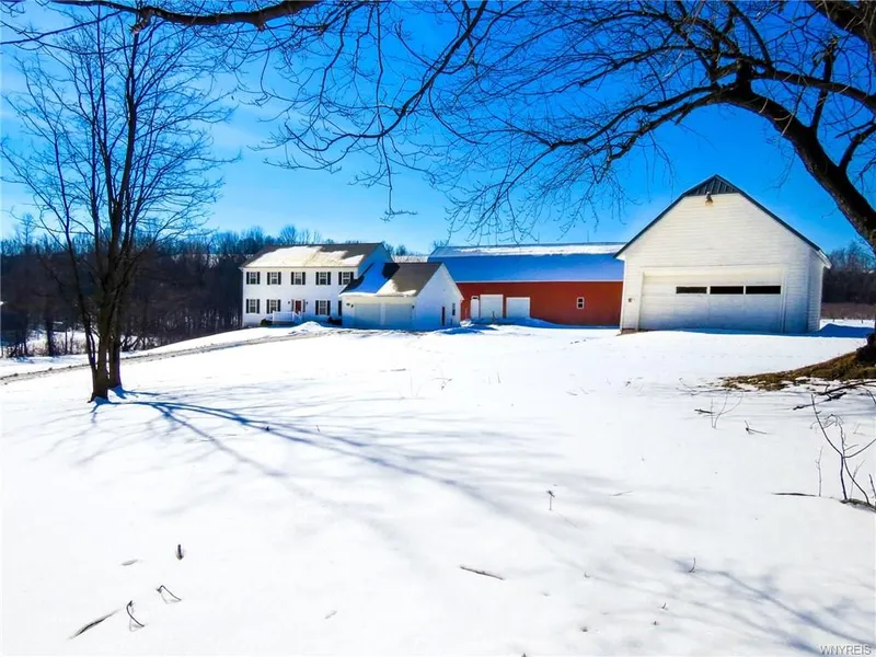 Overlooking a beautiful pond and apple orchard, this five bedroom house has picturesque views that will take your breath away. Spacious kitchen opens to family room featuring solid surface counters and breakfast bar. Formal dining and living room. Lots of natural light throughout with fantastic views of the apple orchard from the family room. First floor bedroom and full bathroom. Large deck off kitchen with vinyl railings. Walk-out basement with connection for generator. Tremendous two story apple barn provides plenty of space for all your hobbies. Additional detached two car garage with attic. Property includes a generous garden bed and over three acres of apple trees. Dont wait! Call Today!