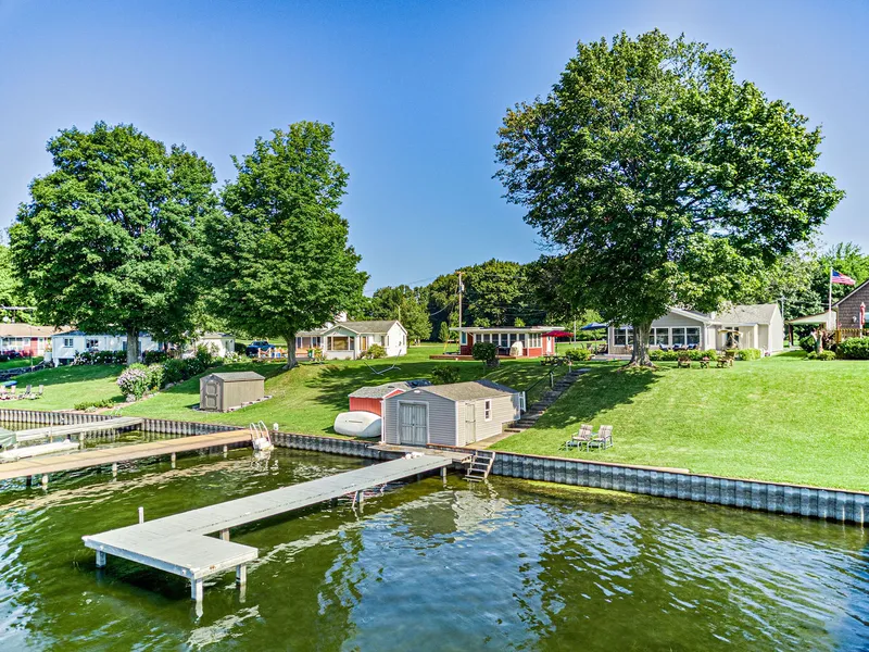 Enjoy waterfront living on Sodus Bay! Year round 1400 sq ft. home rebuilt in 2012 with updated kitchen and living room with a wall of windows overlooking the bay. Custom natural cherry cabinets, gleaming red birch hardwood floors. First floor master bedroom with oversized walk in closet, sliding door to expansive maintenance free Azek deck. Loft area that can serve as a den or bedroom. Two bonus storage areas totaling 312 sq ft that is not included in square footage. 50 ft L shaped PERMANENT dock! Shoreline outbuilding for storage, steel break wall. Delayed Negotiations until 8/9/21 @ 1pm. OPEN HOUSE SUNDAY 8/8/21 from 12pm-3pm!