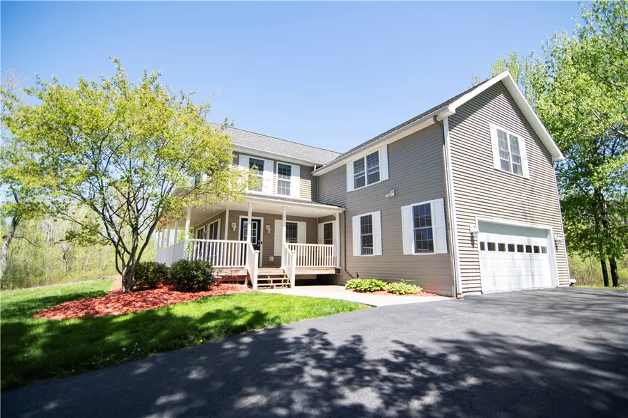 Welcome to your serene retreat on 8 sprawling acres of blissful countryside. This beautiful home built in 2008 offers the perfect blend of peaceful country living in a modern home while still being just minutes from everyday amenities. Brand new features include stainless steel kitchen appliances, flooring, carpet, paint and AC unit. Venture upstairs to find 3 bedrooms and a sizable bonus room, a versatile space that could easily serve as an additional bedroom, home office, or entertainment haven, limited only by your imagination. 12 course basement provides perfect opportunity to create additional living space. Outside, the large wrap around porch and expansive grounds invite exploration and endless possibilities. This property offers the ultimate canvas for realizing your dreams of country living. Delayed negotiations offers due Wednesday May 15th @ 5pm.