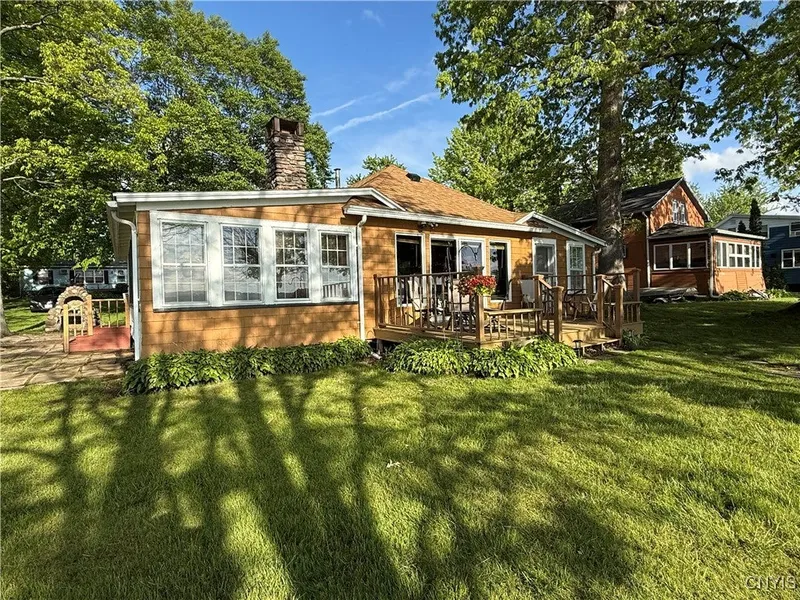 Prepare to be captivated by 6961 Owens Shore Road, an extraordinary and rare-find with an incredible 95.5 feet of water frontage, nestled on the pristine shores of Sodus Bay, Wolcott, NY. This isn't just a cottage; it's a cherished legacy, having been lovingly held by the same family for over 60 years. We can only imagine the countless memories forged here—the laughter echoing across the water, the quiet moments of reflection, and the deep roots established over generations. While parting with such a treasured haven is undoubtedly difficult, it's time for this special place to be passed on, ready to provide a new family with a lifetime of equally cherished moments and boundless joy. Your private paradise unfolds directly at your doorstep. Imagine endless days basking in the glow of spectacular sunrises and witnessing vibrant, fiery sunsets painting the sky over the bay—a breathtaking panorama that will become your daily masterpiece. The charming 900 sq ft cottage, boasting 2 bedrooms and 1 bath, refinished pine flooring throughout was designed for the ultimate lakeside living experience. Step onto the generously sized deck, an idyllic vantage point perfect for entertaining, tranquil contemplation, or simply savoring the bay's dynamic beauty. Inside, the heart of the home features a rustic yet elegant stone fireplace, whose warmth and character extend seamlessly to an outdoor stone fireplace, creating an inviting ambiance for every season. Direct access to the bay means a world of adventure awaits. Dive into the cool waters, cast a line from your large private dock for exceptional fishing, or launch your boat for exhilarating excursions across Sodus Bay. This property offers the quintessential waterfront lifestyle, where swimming, fishing, and boating are not just activities, but an integral part of your everyday existence. This is your chance to own a truly super amazing slice of heaven on Sodus Bay – a tranquil sanctuary offering both seclusion and boundless recreation. Opportunities like this are exceptionally rare. Embrace the dream; schedule viewing today and discover the magic of Owens Shore Road!