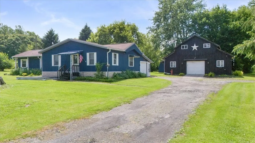 What a nice quiet country location. This home features 4 bedrooms, huge living space as well as heated workshop & garage space. The home features cathedral ceilings in the open great room that encompasses the Kitchen eat in breakfast bar, dining & family room area. This is the heart of the home and this then leads you to the Huge Living room, entry, bedrooms, office space, utility/laundry room as well as the 2 car deep attached garage but then you also have the 32x24 2 story Barn built in 2008 with 2nd story Bonus room that is already insulated and has electrical run. The beautiful, treed lot also has a 12x8 shed, private patio off the back of the barn, raspberries, outside generator switch/wiring (all that is needed is your generator) & so much more to enjoy! Home has natural gas heat with separate heat units in the main living area/bedrooms, living room, utility room & workshop/garage. Such a great buy for all that this property has to offer. Sf is from previous sale records. Tax info is incorrect with the county they do not have additions that were added to the structure.