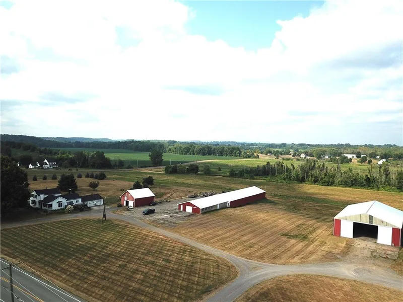 2887 Walworth Road - Macedon, NY - Gananda School District Discover the perfect blend of country charm and modern convenience in this versatile 3-4 bedroom, 1 1/2 bath home set on approximately 6.4 acres of land. Inside, you'll find a custom kitchen and a beautifully designed full bath, accented by warm natural wood beams and a cozy propane fireplace. Relax on the inviting open front porch or entertain on the side deck. The attached 2-car garage, updated mechanicals, vinyl siding, and a new roof provide ease of ownership. For those seeking space for hobbies, farming, horses, or business opportunities, this property offers over 12,000 sq ft of barn space. One barn is currently rented through 12/31/25, providing potential income. One barn has a existing horse stall with yet another barn having the size and opportunity to add many stalls. Whether you envision a farmette, workshop, or creati...