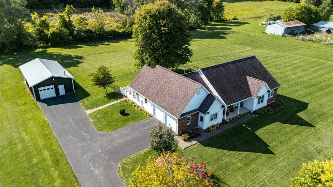 Welcome to this beautifully maintained Daryll Triou built Ranch home, built in 2000, perfectly set on 2.26 scenic acres with a 24’ x 45’ HEATED shop—ideal for hobbies, storage, or workspace. Offering 3 bedrooms, 2 baths, and over 2,032 sq. ft. of living space, this home combines comfort, function, and charm. Inside, you’ll find hardwood floors, an elegant living room with a cozy gas fireplace, a formal dining room, and a heated sunroom to enjoy year-round. The kitchen is well-appointed and includes all appliances and a spacious dining area adjoining multiple windows! A first floor office, laundry and mudroom add to the convenience. The property’s setting is truly beautiful, providing space and privacy with room to garden, entertain, or simply relax. With its spacious layout, modern updates, and incredible shop space, this home has it all! Delayed negotiations: Tuesday Sept.16 @ 3pm.