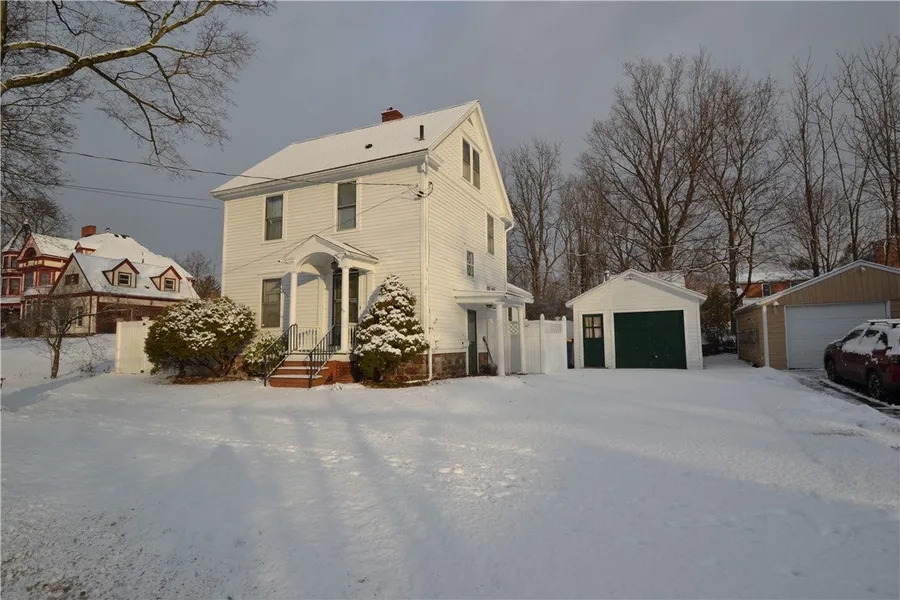 Charming circa-1900 Village Colonial offering an inviting open porch and classic character throughout. The home features hardwood floors, a spacious family room addition with a cathedral ceiling, and a partially finished basement. Full walk up attic with great storage. Recent updates include a 2020 water heater, 200-amp electrical service with generator hookup, and a new dishwasher (2025). Enjoy a private backyard and detached garage. Delayed offers until Monday Feb, 2, 2026 @ 3pm. 1422 Sq. Ft from survey measurements.