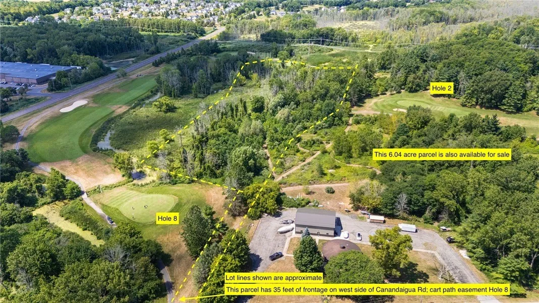 Raw land for sale in Gananda schools, ideal for recreational use. This lot is part of a Planned Unit Development meaning the town is open to considering a variety of uses with the right approvals. Frontage on Canandaigua Road frontage of approximately 35 feet. Blue Heron Hills golf course adjoins the southerly, westerly and northwesterly borders of the property. The land is partly wooded and partly meadow, with a walking path from the Canandaigua Rd frontage extending about 200' into the property and connecting nearby golf course holes. Utilities available include gas, electric, public water, sanitary sewers, cable and telephone. This property would serve as an excellent companion to 0 Canandaigua Road - LOT 2 (adjacent lot MLS# R1628399). However, it may be purchased individually. Another lot available for sale nearby is MLS #R1628411.