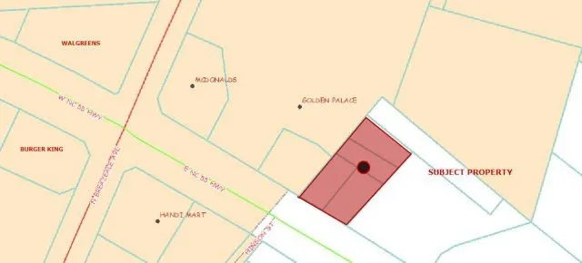Approximately 1 acre located directly on busy Highway 55 in the heart of the commercial district in Mt. Olive, NC.