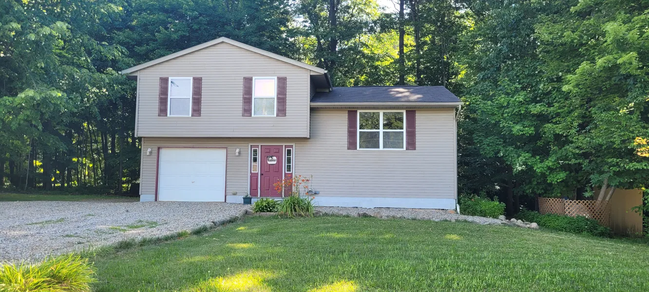 Built in 2005, freshly painted in neutral tones. 2 large private wooded lots and a 2 level deck to enjoy the outdoors w/doors to the kitchen/dining rm & master bedrm. Each pie shaped lot has frontage over 200 feet, together they make a half circle. On a secluded road, close to the back gate for quick access in & out of community. Open Concept liv/din rm & kitchen area w/large move-able island. Bedrms custom built to give master bedrm more space & 2 closets. 3 bedrm home w/2 bathrms. Large double wide drive w/plenty of parking & attached 1-car gar. (potential to build large garage on 2nd lot). Large tool shed in backyard. Basement used as a family/tv rm includes large window for natural light. 2 options for laundry (in basement or floor level 2nd bathrm/laundry rm). Sump pump, water heater, propane furnace, and A/C been serviced & checked, located in basement w/easy access wall. Beautiful home in great neighborhood. Cinnamon Lake is located in the scenic heart of Ohio Amish country. Situated in the Northeastern part of Ashland County just outside of West Salem. Over 1200 acres encompass the private development which includes over 200 acres of common areas and a 135 acre lake. Amenities include a 4,500 sq. ft. lodge, a beach & swimming pool, basketball court, tennis courts, sand volleyball & a playground. Wet & dry docks are available for a fee to members. Golf carts are allowed. The lake is stocked w/bass, walleye, saugeye, crappie, & bluegill to name a few!