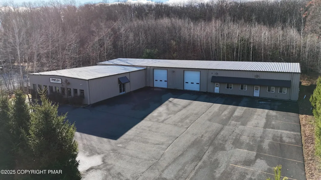 12,058 square foot Commercial Building, in excellent condition, with over 200 feet of frontage on busy Route 590 near Hawley and Lake Wallenpaupack, near I84. Located on 2.87 acres with a large paved parking area. Don't miss this exceptionally maintained, commercially zoned building with 10,320 square feet of heated, open span space with ceiling heights ranging from 12.5' to 15.5', ideal for warehouse, distribution, or light manufacturing. Two 12' wide x 14' high garage doors provide easy access for deliveries and equipment. The remaining 1,738 square feet includes central AC, a well-appointed office section with four private offices, a restroom, kitchenette, and a potential display or showroom area. With its excellent condition, prime location, flexible layout, and commercial zoning, this property is well-suited for a wide range of business uses.