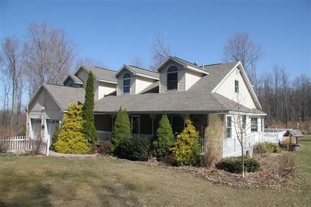 STATELY COUNTRY HOME ~ 9.7 ACRES ~ VIEWS ~ POND ~ Spacious 3 bedroom, 3.5 bath country home with park setting & breathtaking views. Home offers: bright and airy living room, formal dining room, oversized eat in kitchen, hardwood floors, fabulous floor to ceiling stone fireplace, hot tub, stone outdoor grill for entertaining, wrap around porch, 3 car garage and more!