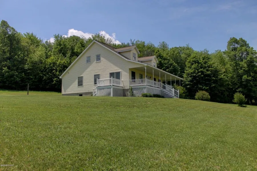 Secluded driveway leads you to this Gorgeous Cape Cod on just over 5 beautiful acres sitting on top of the mountain with spectacular views! Recently upgraded with beautiful hardwood floors in the Master and Guest bedrooms. This home has over 2800 square feet above grade of living space with the Master Bedroom with Master Bath on the first floor. Granite counter tops in the kitchen, an inviting breakfast nook, a formal dining room, large living room with a field stone fireplace, a large wrap around deck with panoramic views for miles and mile!