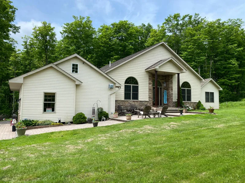 12 ACRE COUNTRY ESTATE - PICTURESQUE POND - Exciting 4 bedroom, 3.5 bath country contemporary set on choice 12 acre parcel with beautiful grounds and pond. Highlights include bright & airy living room with fireplace and 14 ft ceilings, dramatic great room overlooking expansive entertainment deck and pond, huge gourmet kitchen with luxury appliances, master bedroom suite, and formal dining room. Plus huge dry basement with shop and spacious garage area. Private yet convenient to Elk Mtn Ski Area and 4 season recreation!