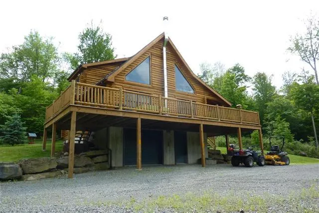 UNIQUE LOG HOME ~ PRIVATE COUNTRY SETTING ~ A long private driveway leads to this 3 bedroom, 2 bath country charmer nestled on 3+ acres. Features and open floor plan with spacious living room, country kitchen, dining area, hardwood floors, vaulted ceilings, central air, wrap decking, covered porch, 1 car garage and an extra outbuilding. Deeded Lake Rights. Minutes to Delaware. Development has access to adjoining gamelands. Owner willing to sell most furnishings - move right in!