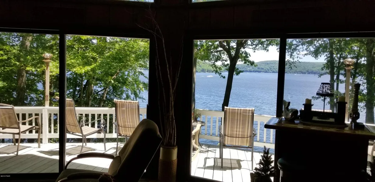 Lakefront Chalet in prestigious Lakeland Colony, with maintenance free vinyl cedar style siding. Easy Slope to lakefront from exit of basement sliders. Hardwood floors in great room with cozy fireplace. Great views of lake from both levels of house. EZ dock included with sale. This is a must see. Move in ready condition.