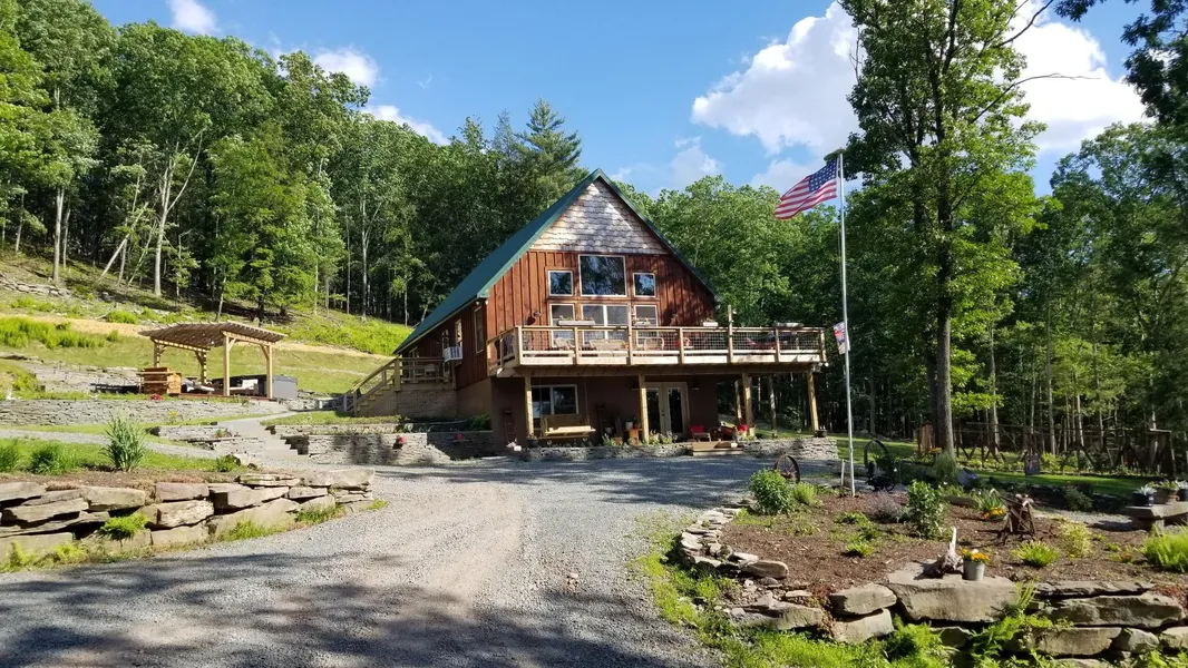 Like new! Pride of ownership is evident throughout this well kept 3 bedroom, 3 bath home nestled on beautifully landscaped 4+ acres parcel with gardens. Home features, spacious kitchen with granite topped island and stainless steel appliances, bright and airy open floor plan concept living/dining area, great room with towering glass facade, huge family room with custom built stone bar plus stone fireplace. Wrap-around deck for entertaining and outdoor gazebo. Primary bedroom suite with walk in closet, private guest bath and 3rd floor loft with additional guest room. Four zone heating and patio.